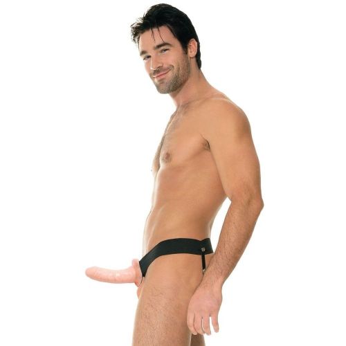 Страпон реалістичний порожнистий чоловічий на трусиках та з вібрацією бежевого кольору Pipedream