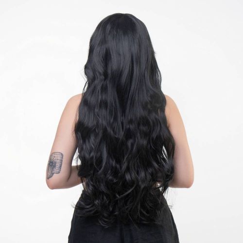 Перука з чубчиком з довгим хвилястим волоссям чорного кольору Fetish Hair довжина 800 мм