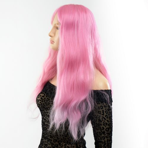 Перука з чубчиком рожевий з довгим хвилястим волоссям Fetish Hair