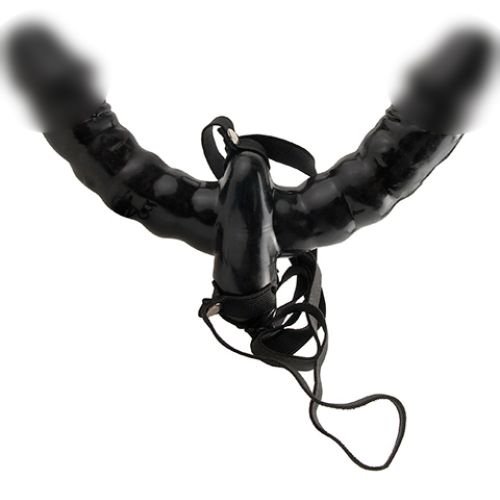 Подвійний ременевий вібрострапон реалістичний чорного кольору Pipedream FF Double Delight