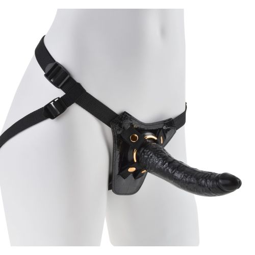 Ременний страпон реалістичний чорного кольору Pipedream Fetish Fantasy Gold Designer Strap On Black