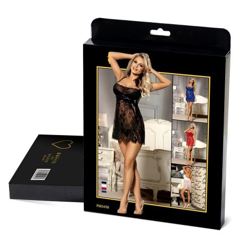Пеньюар зі стрінгами Star Night з мереживом, чорний, M-L