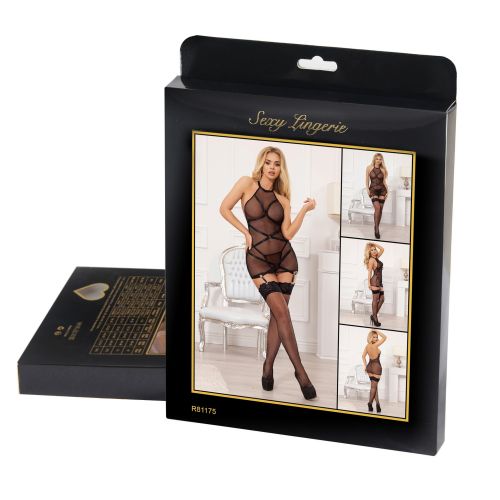 Сукня напівпрозора з тримачами для панчох Star Night і трусиками, чорна, M