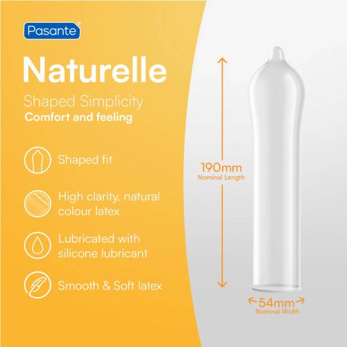 Презервативи Pasante Naturelle - це прозорі презервативи з латексу зі змащенням, зручною формою та резервуаром.