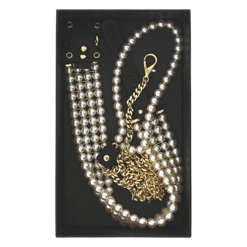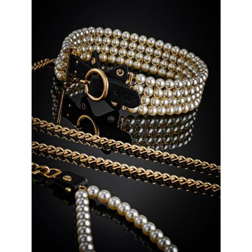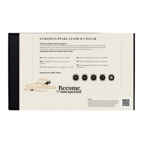 Guilty Pleasure Luminous Pearl Leash & Collar - елегантний комплект, що поєднує вишуканий дизайн із функціональністю для еротичних ігор. Регульований нашийник виготовлений з м'якого веганського шкірозамінника та оснащений золотистою фурнітурою для надійної та комфортної посадки. Прикріплений повідець із декоративних штучних перлин із золотистими ланцюговими акцентами створює яскравий візуальний ефект та посилює динаміку взаємодії, роблячи гру більш привабливою та стилізованою. Комплект підходить як для рольових ігор, так і стильного образу в еротичних сценах або тематичних заходах.