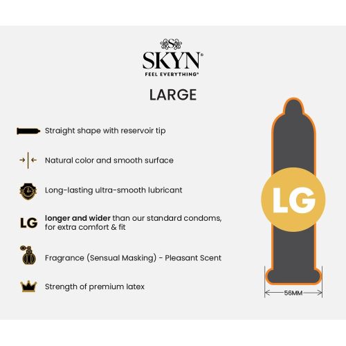 SKYN Elite Large – це безлатексні презервативи збільшеного розміру, створені для тих, хто прагне максимальної свободи рухів та підвищеного комфорту. Вони виготовлені з революційного матеріалу SKYNFEEL, який відрізняється особливою м'якістю та еластичністю, забезпечуючи природні та чуттєві відчуття.