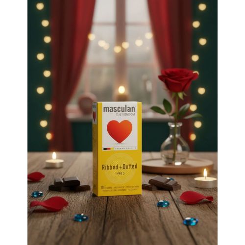 Masculan Ribbed + Dotted підходить для тих, хто любить експерименти, але без втрати якості. Це не просто захист — це відчуття новизни, грайливості та глибокого зв'язку з партнеркою.