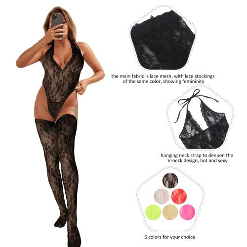 Сексуальне мереживне боді з V-подібним вирізом з панчохами - цей виріб ідеально підходить для тих, хто хоче почуватися впевнено та сексуально. Тканина виконана з ніжної мереживної сітки, яка одночасно м'яка та приваблива.