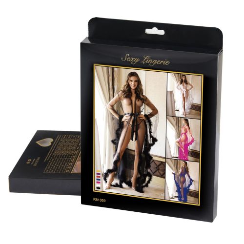 Ідеальне поєднання вишуканості та чуттєвості – цей новий сексуальний халат з поясом – це вічна класика, створена, щоб лестити та спокушати. Виготовлений з окантовкою з пір'я та широкими рукавами для чарівного вигляду.
