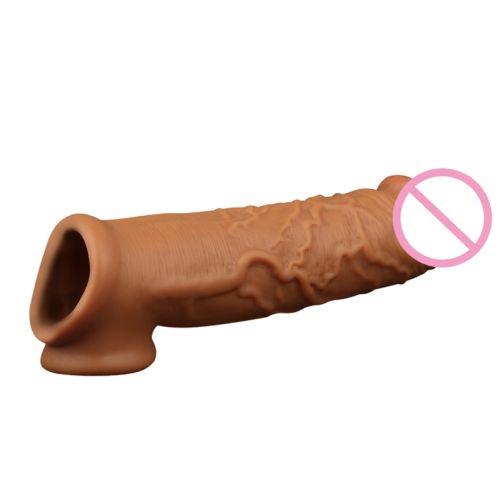 Реалістична закрита насадка на член коричневого кольору Penile condom