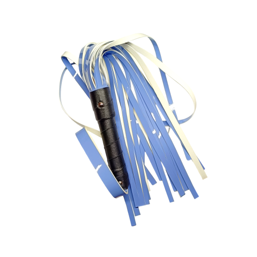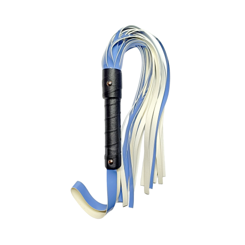 Виконаний у чорно-блакитній гамі, цей флогер зі штучної шкіри виділяється на тлі традиційних аксесуарів бондажних своїм вишуканим виглядом. Лакові "хвости" мерехтітимуть в унісон з кожним ударом, жаліючи та розігріваючи чутливу шкіру.