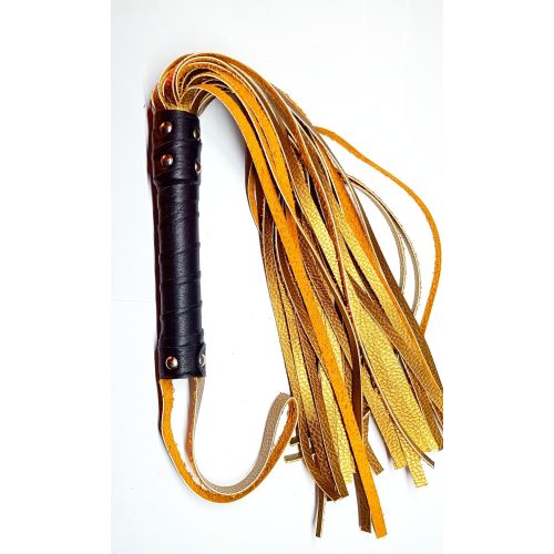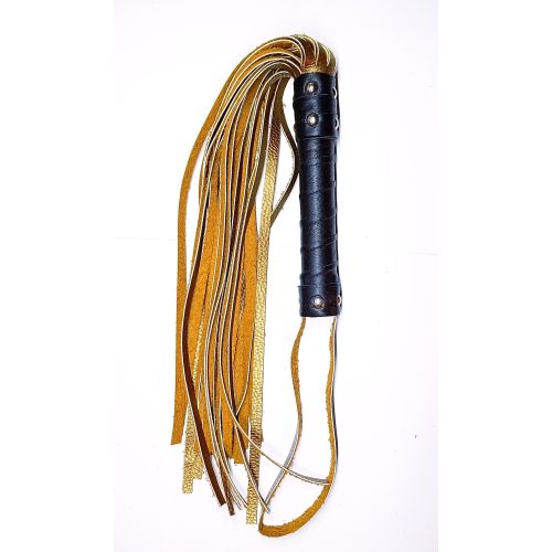 Флогер БДСМ комбінований із шкіряною ручкою бронзового кольору Easy Life BDSM Desire