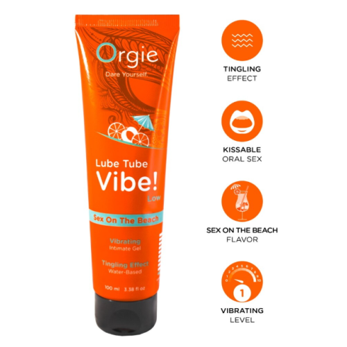 Їстівний інтимний гель-лубрикант на водній основі Vibe! від Orgie з ефектом поколювання і чарівним смаком тропічно-фруктового коктейлю Sex on the Beach. З шовковисто-гладкою, нелипкою текстурою для тривалого та комфортного задоволення під час соло, прелюдії та занять коханням. Під час орального сексу аромат коктейлю лоскоче смакові рецептори, а ефект вібрації, що поколює (рівень 1/10) додає додатковий рівень збудження. Щедра кількість гелю наноситься на інтимну зону, щоб вже через кілька секунд відчути збуджуючий, вібруючий і тривалий ефект, що поколює. За бажанням гель можна нанести повторно. 100мл.