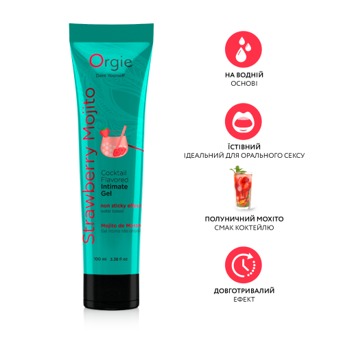 Опис Орального лубриканту на водній основі зі смаком коктейлю Полуничний мохіто Orgie 100 мл