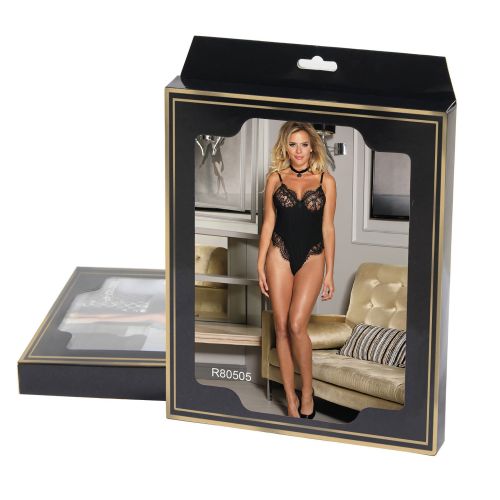 Сексуальне боді з глибоким вирізом у зоні декольте з мереживом чорне Star Night розмір XL