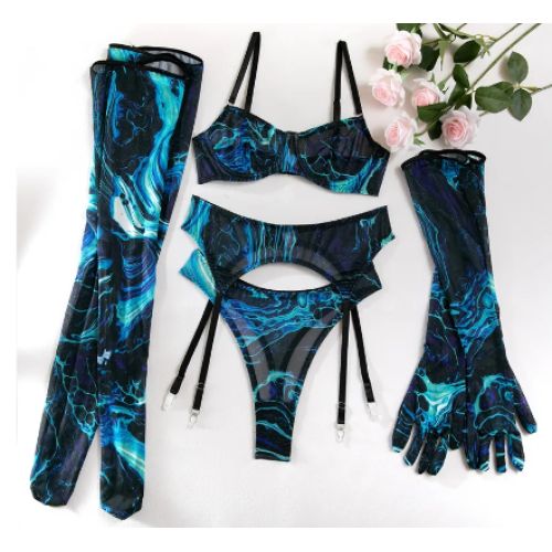 Неймовірно спокусливий і чарівний комплект білизни, який підійде не тільки для незабутніх ночей, але і для повсякденного життя. Легкий і невагомий, не коле і не натирає шкіру - отримуй задоволення від себе протягом усього дня! Комплект виконаний з легкої та м'якої сітки, не ширяє і не створює дискомфорту. Ліф добре підтримує груди, трусики тягнуться підкреслюючи попу. У комплект входять рукавички, панчохи та пояс. Фантазуй створюючи різні образи та почувайся справжньою королевою ночі! Колір: синій, чорний Розмір: S підійде і на M Об'єм грудей: 75-85-В,С Упаковка: пакет