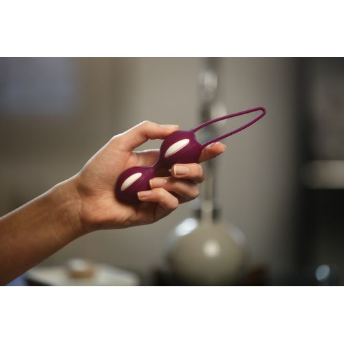 Ефективний тренажер для щоденних тренувань інтимних м'язів виготовлений з 100% медичного силікону, що не викликає реакції і абсолютно безпечного для тривалого носіння. Усередині заховані важкі металеві кульки, які при кожному русі беззвучно вібрують і тим самим стимулюють стінки піхви, роблячи тренування максимально ефективними. Такі заняття зміцнюють інтимні жіночі м'язи і тим самим збільшують задоволення від сексу для обох партнерів. Кращих результатів можна досягти при регулярних заняттях і виконанні вправ Кегеля. Для комфортного введення кулька має виїмку для пальця, а витягуються тренажери за допомогою силіконового шнурочка.