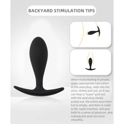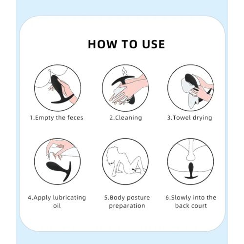 Починайте використання анальної пробки повільно, уважно слухаючи своє тіло. Спочатку спробуйте трохи розслабитися, потім м'яко вставте круглу верхушку пробки. Пам'ятайте про використання великої кількості лубриканту для комфорту.Догляд за анальною пробкою