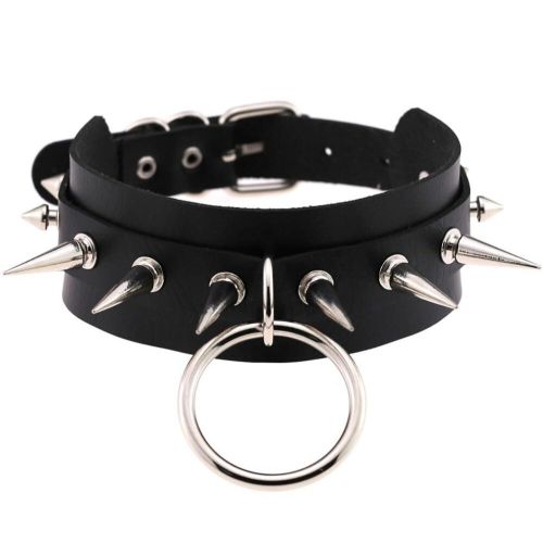 Чокер-нашийник з кільцем і шипами чорний SKN-AS06
