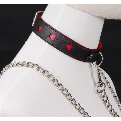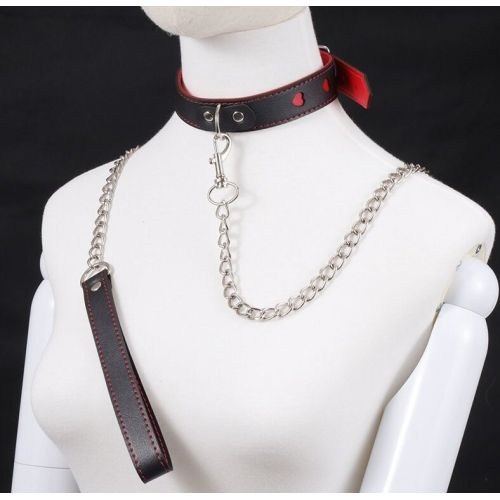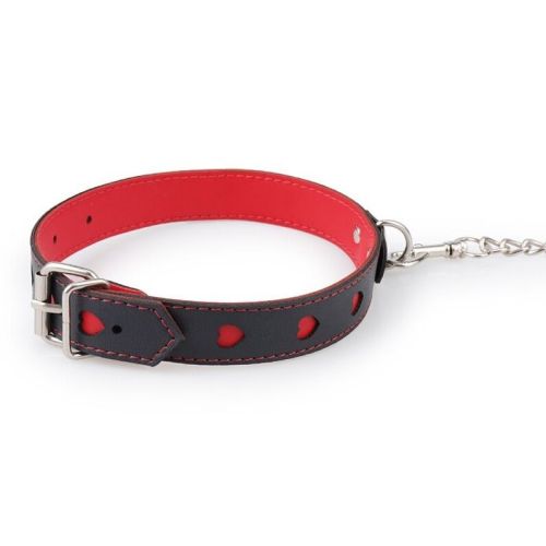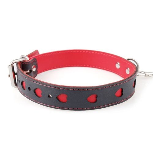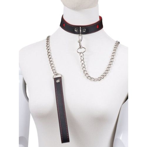 Нашийник з повідцем для БДСМ чорно-червоний COLLAR HEART