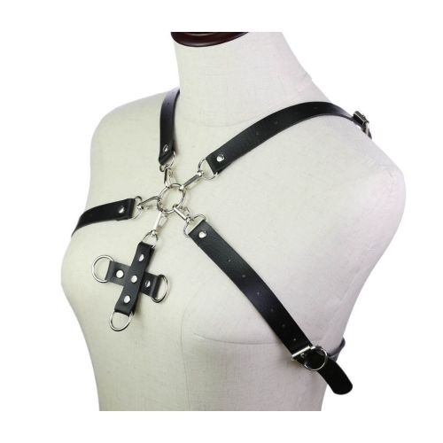 Портупея зі штучної шкіри з хрестоподібним фіксатором. Може використовуватися не тільки як БДСМ аксесуар, а також з повсякденним одягом, що додасть яскравості вашому стилю одягу.