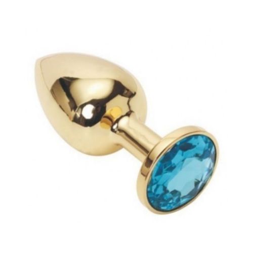 Металева анальна пробка золотиста з синім кристалом SKN розмір S