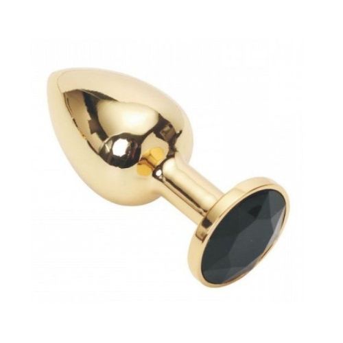 Металева анальна пробка золотиста з чорним кристалом SKN розмір S
