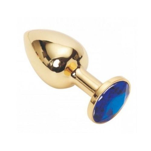 Металева анальна пробка золотиста з синім кристалом SKN розмір S