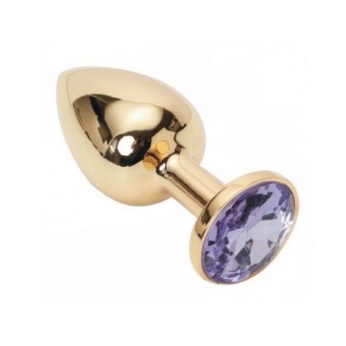 Металева анальна пробка золотиста з фіолетовим кристалом SKN розмір S