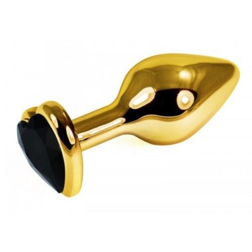 Анальна пробка металева золотиста з чорним стразом у формі серця SKN Розмір S