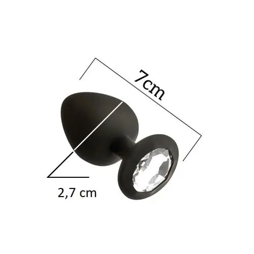 ## Силіконова анальна пробка чорного кольору з блакитним кристалом SKN розмір S