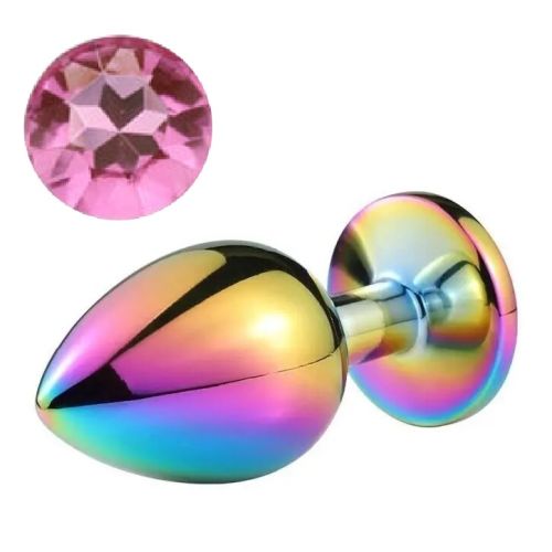 Металева анальна пробка хамелеон з рожевим кристалом SKN розмір S