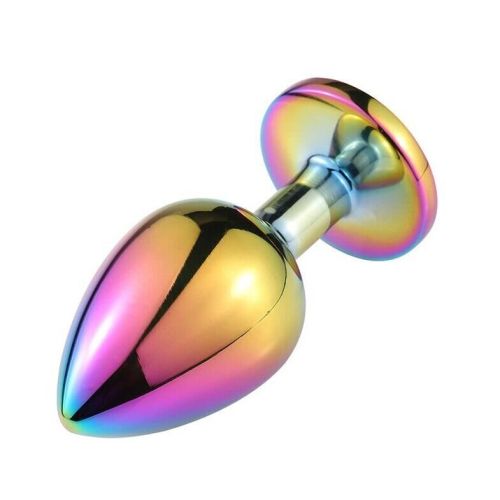 Металева анальна пробка хамелеон з сиреневим кристалом SKN розмір S