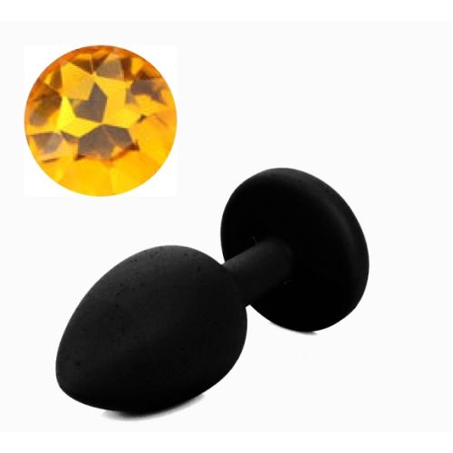 Силіконова анальна пробка чорна з оранжевим кристалом SKN розмір S