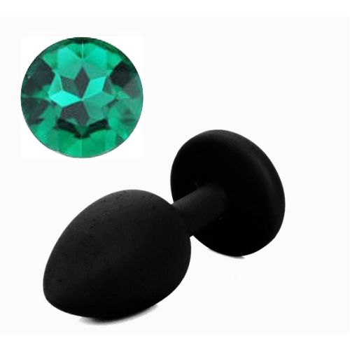 Силіконова анальна пробка чорна з зеленим кристалом SKN розмір S