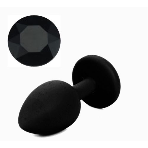Силіконова анальна пробка чорна з чорним кристалом SKN 07 розмір S