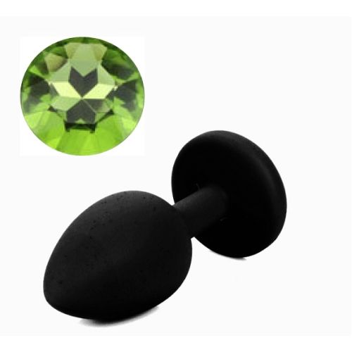 Силіконова анальна пробка чорна з салатовим кристалом SKN розмір S
