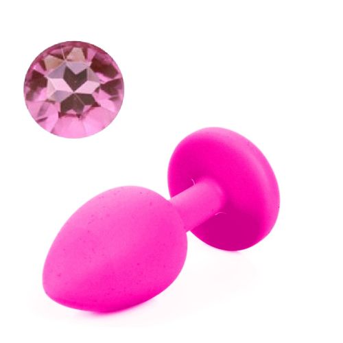 Силіконова анальна пробка рожева з малиновим кристалом SKN розмір S
