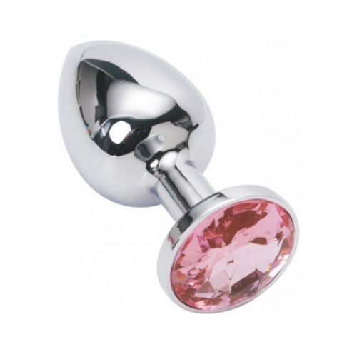 Металева анальна пробка сріблястого кольору з рожевим кристалом SKN розмір S