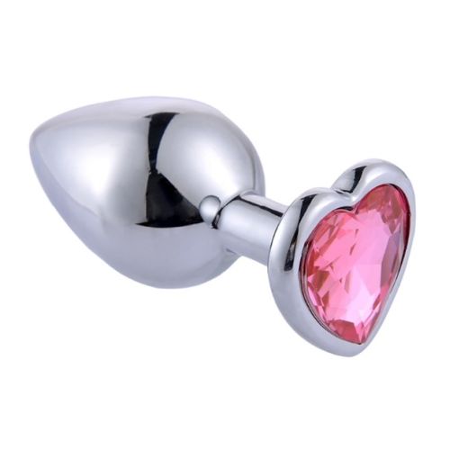 Анальна пробка металева срібляста з рожевим стразом у формі серця SKN Розмір M