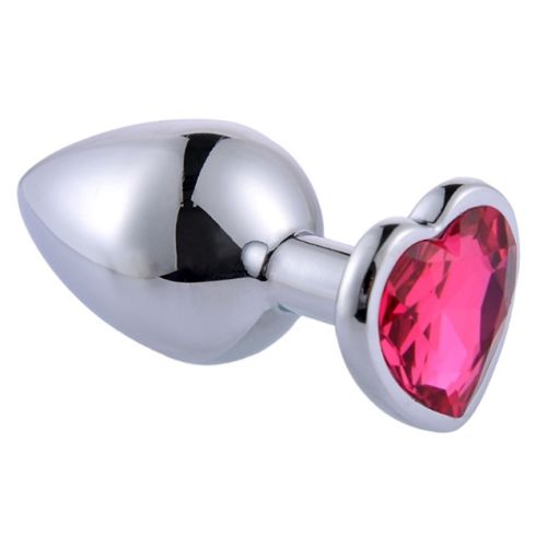 Металева анальна пробка срібляста з малиновим кристалом у формі серця SKN 02 Розмір M