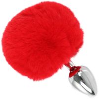 Анальна пробка з червоним хвостиком зайчика з хутра SKN-Z21 розмір S