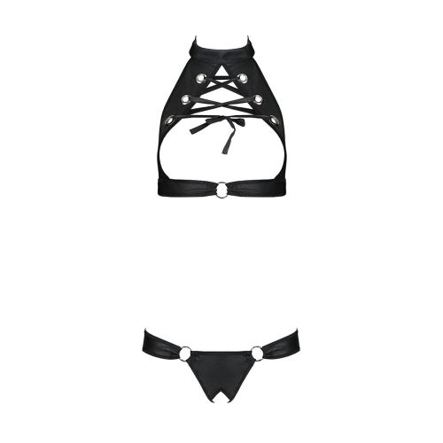 Комплект: відкритий топ і трусики з еко-шкіри з люверсами Malwia Set with Open bra black L / XL — Passion: