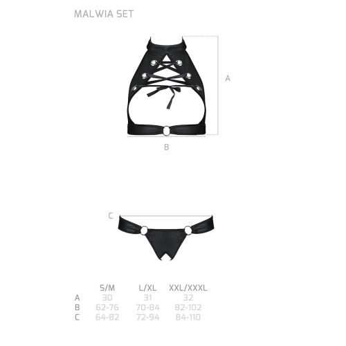 Приміряйте на себе образ фатальної спокусниці, купіть комплект: відкритий топ і трусики з еко-шкіри з люверсами Malwia Set with Open bra black L/XL — Passion.