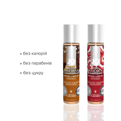 Покращуйте свій інтимний досвід з унікальним набором оральних лубрикантів від всесвітньо відомого бренду System JO. Два різних смаки - солодка цукерка та пикантний імбирний пряник – додадуть нових відчуттів та емоцій у ваше інтимне життя. Будь-який з них забезпечить не лише підвищення чутливості, але й подарує приємні відчуття та незабутній аромат. Завдяки своїй формулі на водній основі, лубриканти забезпечують максимальне зволоження.