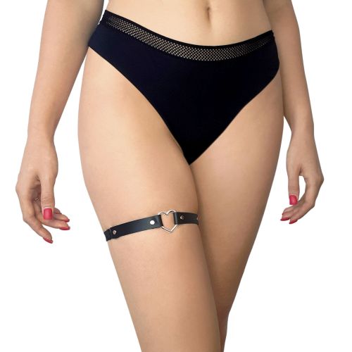 Гартер серце на ногу із натуральної шкіри чорного кольору Art of Sex Terri 1 штука