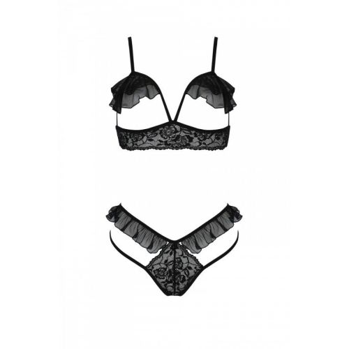 Неймовірний комплект білизни з відкритим бра чорний DOLLY SET Passion, розмір L/XL