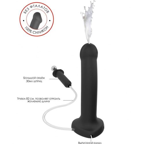 Фалоімітатор на присосці з еякуляцією, силіконовий чорного кольору Strap On Me розмір L