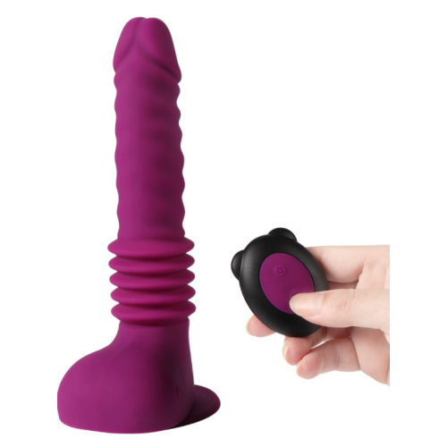 Вібратор на присосці силіконовий фіолетового кольору з пультом ДК Xise Isaiah thrusting dildo