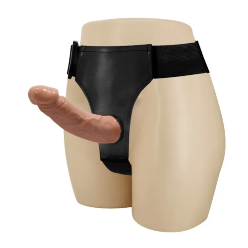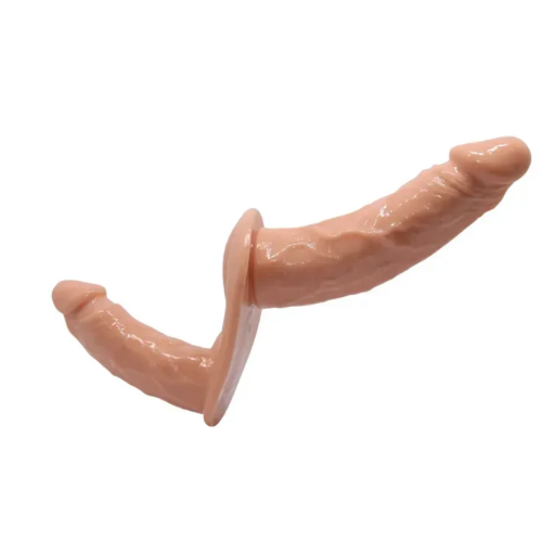Страпон DOUBLE DILDOS Strap On з натуральним рельєфом та дизайном з дуже м'якого еластичного матеріалу. Має реалістичну форму, яскраво окреслену гладку головку зі складками, прямий стовбур з венозною сіткою та невеликий реалістичний фалос для вагінальної стимуляції, а також трусики для кріплення. Трусики зручно регулюються, сидітимуть на стегнах як влиті без дискомфорту та шкоди ніжній шкірі. Головною перевагою цього страпон є можливість насолодитися фрикціями одночасно з партнером - спеціальний вагінальний фалоімітатор стимулює вагіну під час статевого акту.